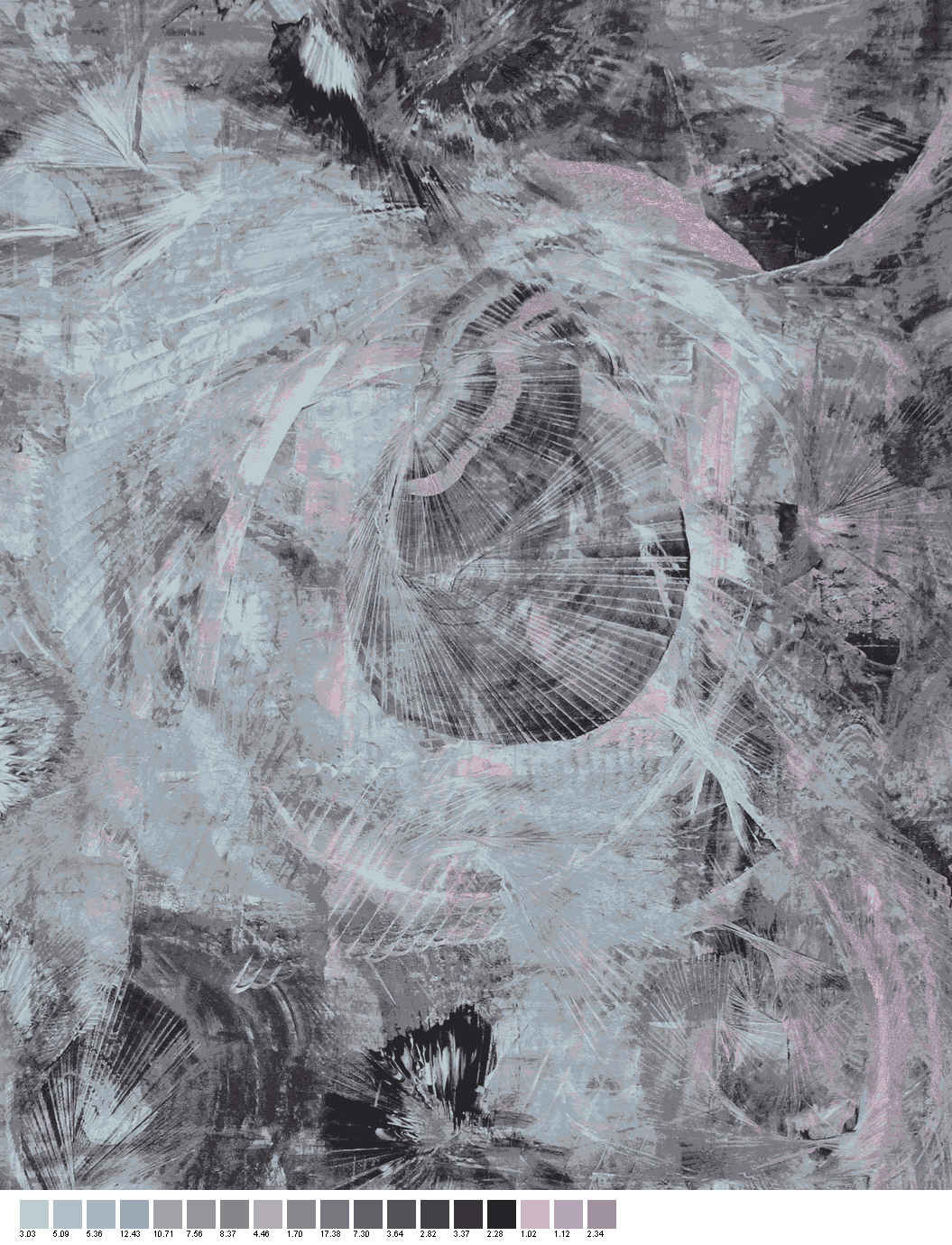 Computer animated design created from the painting using different colors in this version.