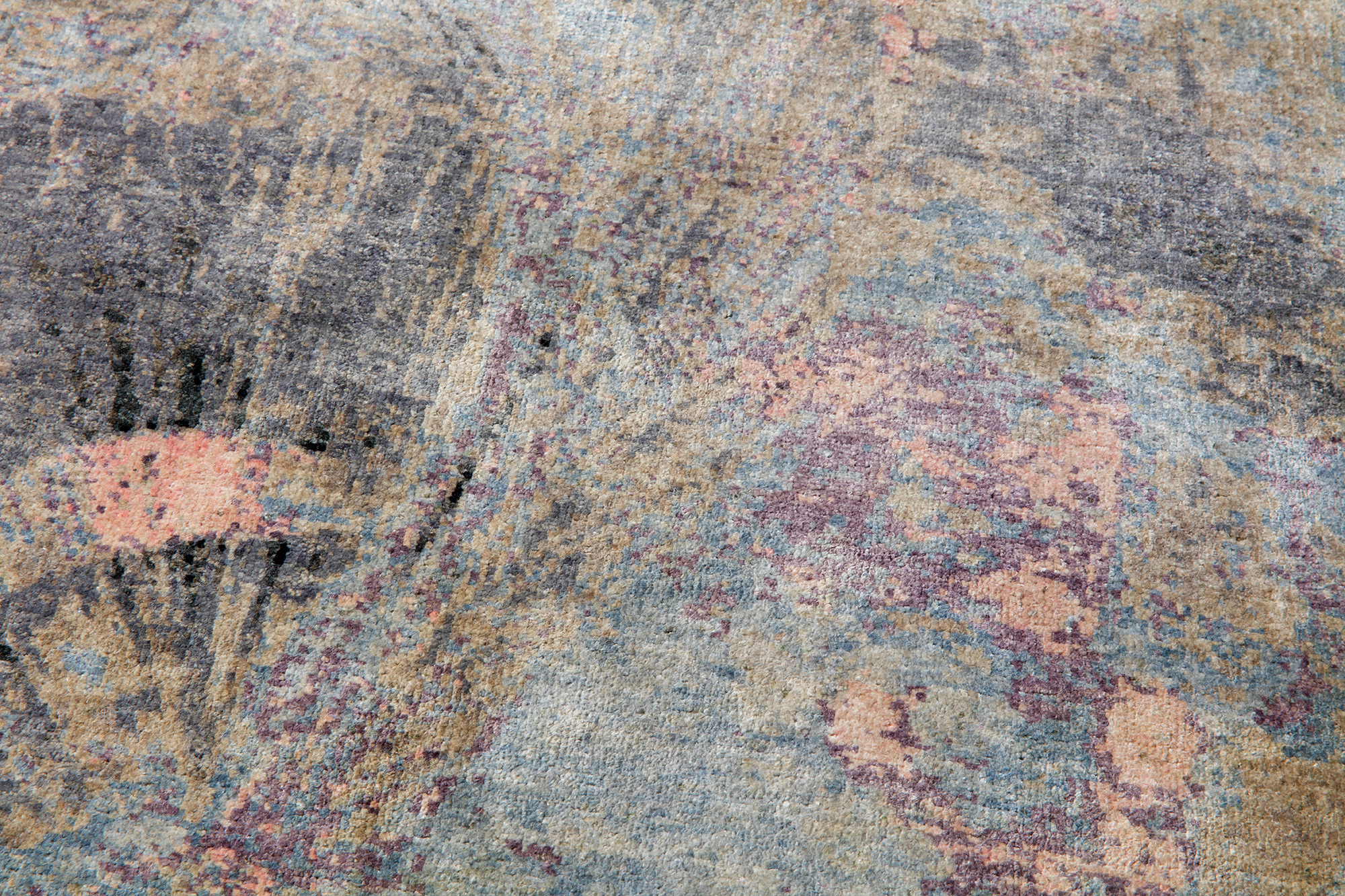 These pieces are made out of 80% natural silk and 20% wool in a unique innovative blend to create more play in color and to add a luxurious look. Never in the history of handmade modern design carpets have there been carpets produced that were more intricate and detailed in design. The use of more than 20 colors and the fact the weavers had to switch colors almost every 2 knots, shows the difficulty in production. 5th generation weavers with over 20 years of experience worked during almost 2 YEARS to finish these SOBERON carpets. It represents the culminus of arts and crafts in contemporary designer carpets.